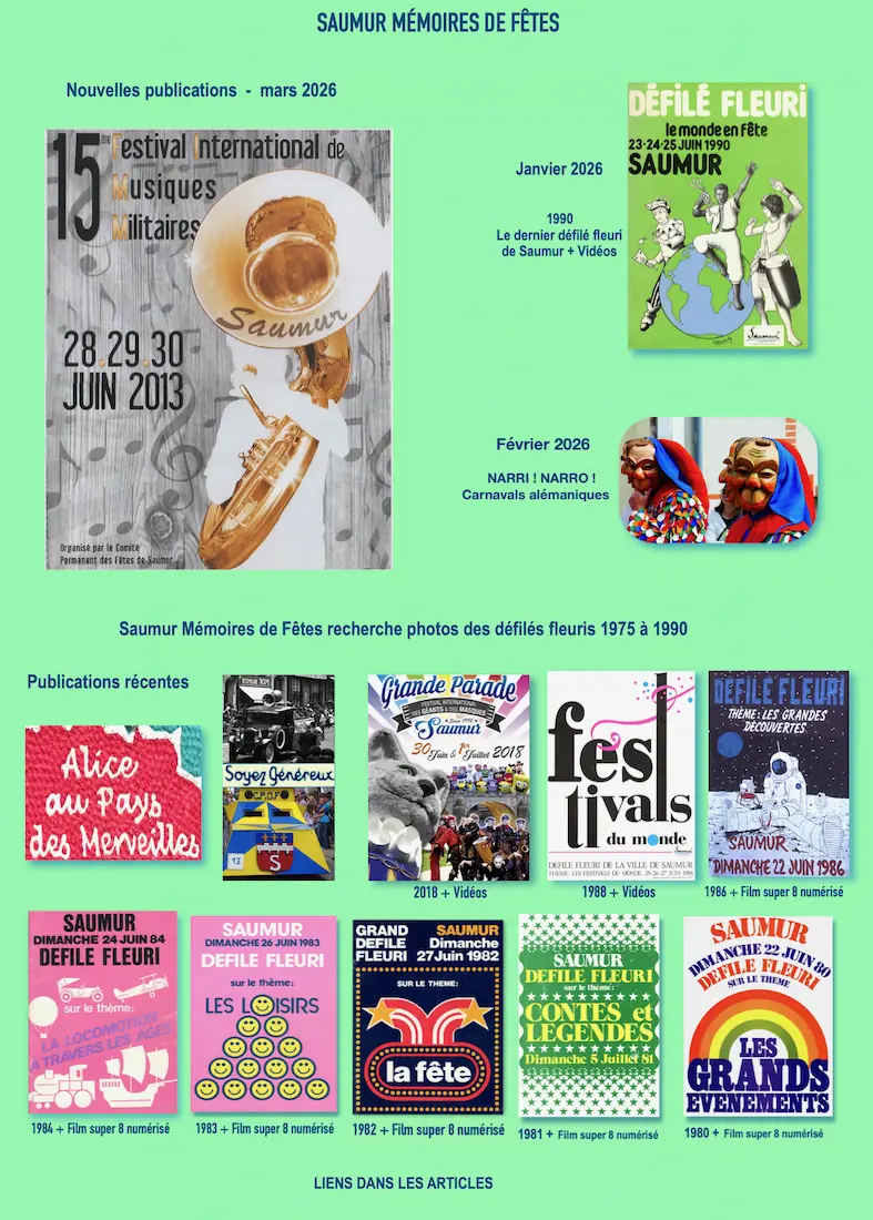 Saumur – En préambule des rétrospectives des défilés fleuris 1986, 1988 et 1990, Saumur Mémoires de Fêtes présente les bilans, les projets, les programmes du Comité des fêtes des années 1985 à 1990.