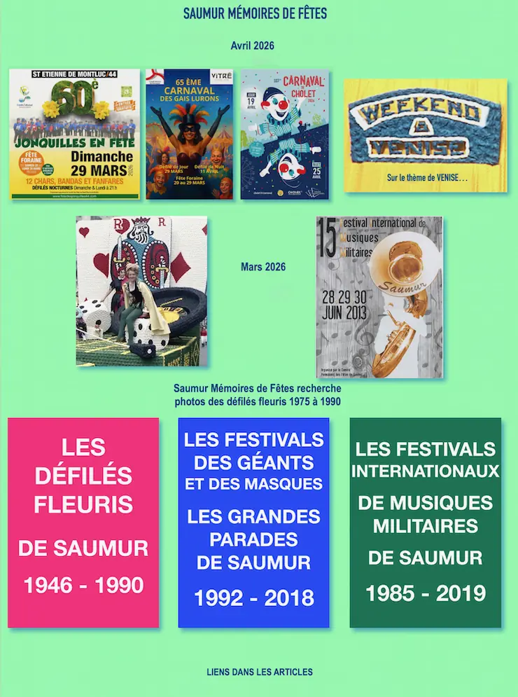 Défilés fleuris de Saumur, Mi-Carêmes et Carnavals de Cholet, autres corsos et carnavals – Des chars, des masques qui évoquent Venise.