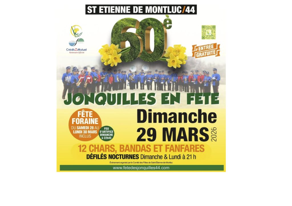 Les Stéphanoises et Stéphanois de Saint-Étienne-de-Montluc ont imaginé cette fête des jonquilles en 1964 et la première édition eut lieu le 11 avril 1965. Le 29 mars 2026, c’était la 60e édition.