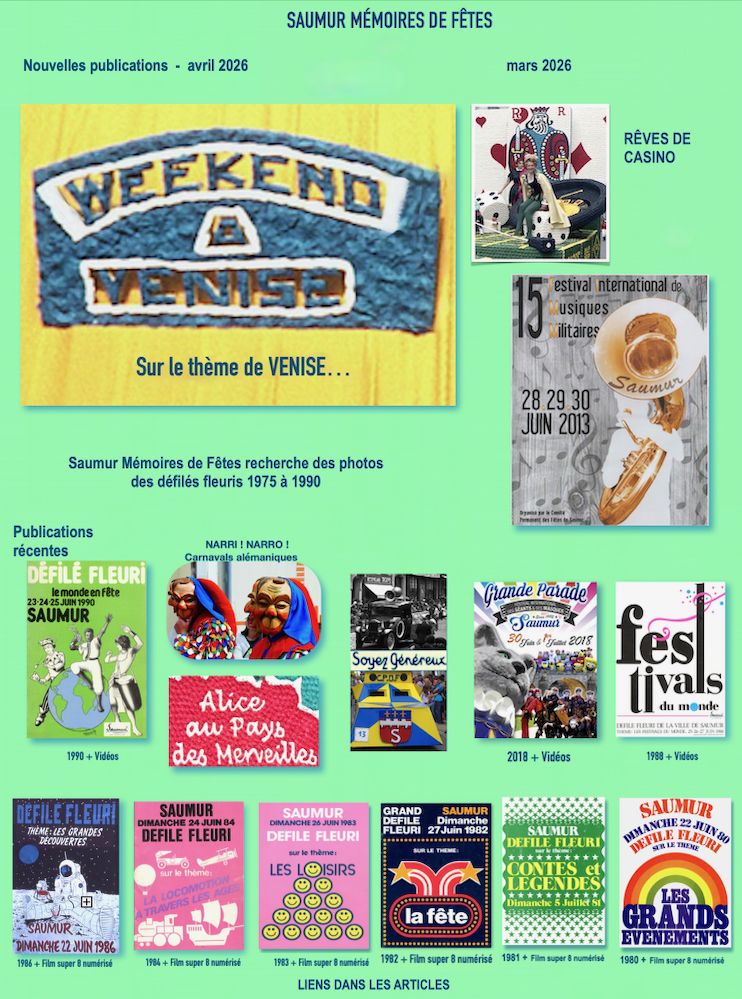 Il est possible d’enrichir et compléter ces mémoires en proposant à la rédaction de SAUMUR MÉMOIRES DE FÊTES photos, films, témoignages et reportages afin d’y être publiés.