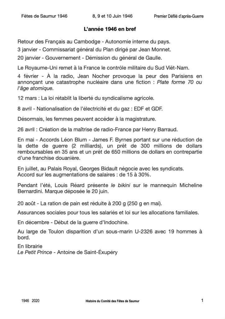 Si dans un album, un tiroir ou un grenier vous avez connaissance de photographies de ce défilé fleuri 1946, merci de prendre contact avec la rédaction dans « Laissez un commentaire » ou sur la page Facebook « Saumur Mémoires de Fêtes ».