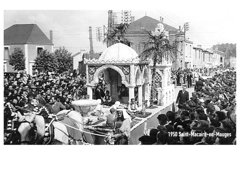 Au début des années 50, l’exotisme colonial était très en vogue. En voici la démonstration lors de la fête des fleurs de Saint-Macaire-en-Mauges en 1950.