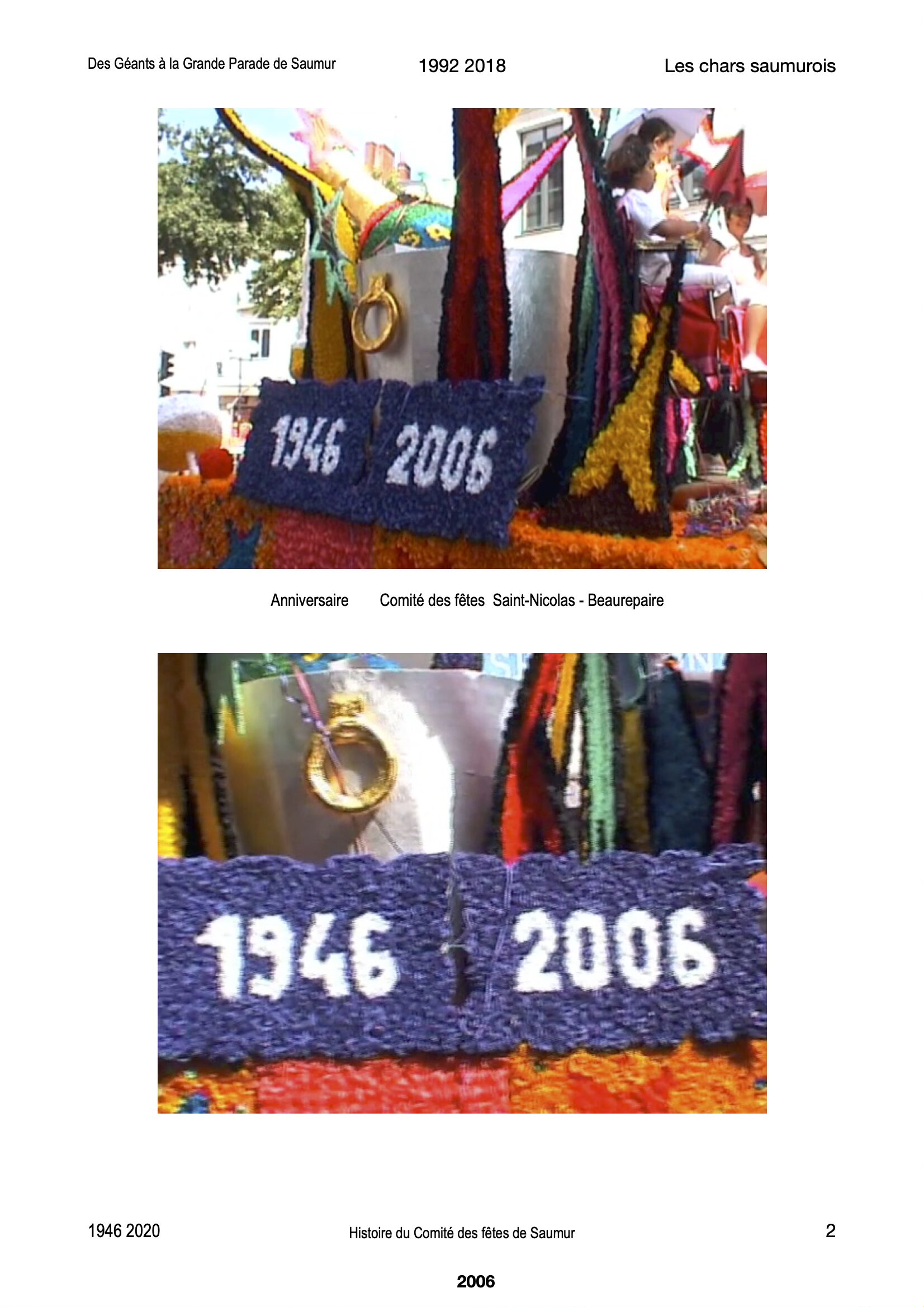 Les photographies de ces chars appartiennent à des archives privées et aux archives du Comité des fêtes. Il est toujours possible de compléter et enrichir ces collections. Les liens qui suivent permettent de (re)découvrir aussi les géants saumurois.